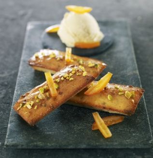 Grosses madeleines au roquefort, sorbet vin rouge épicé
