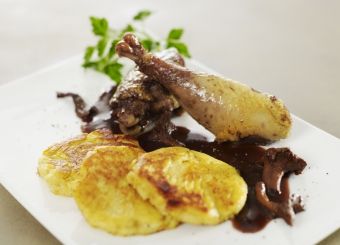 Fricassée de volaille aux morilles, galette de polenta automnale