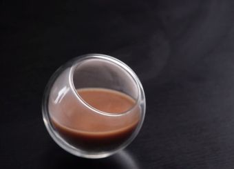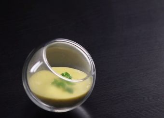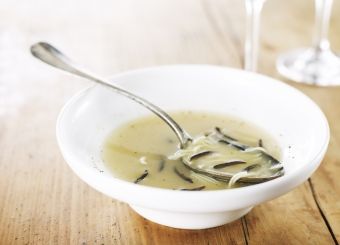 Velouté de volaille, vermicelle noir et blanc au parfum de truffe